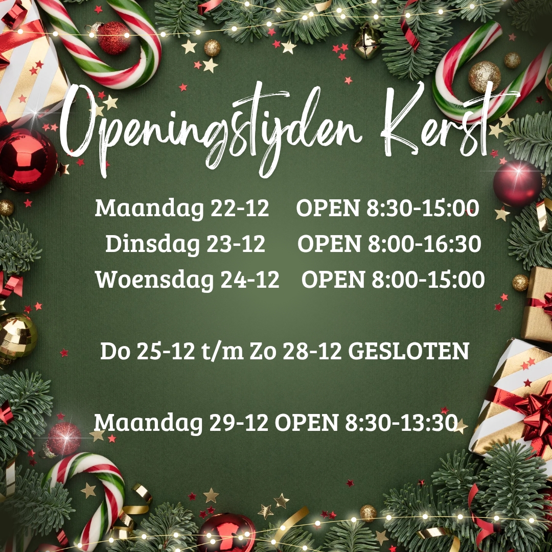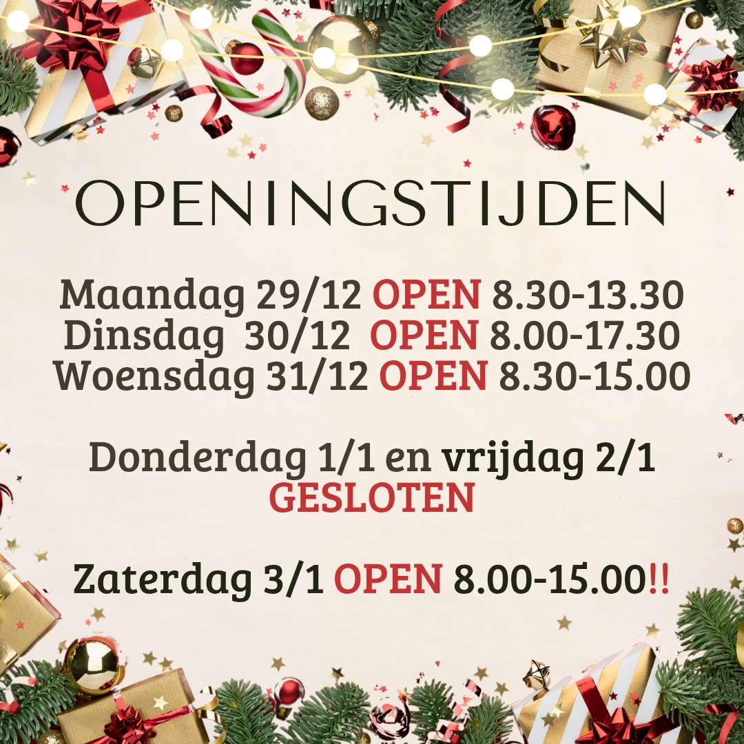 LET OP!! Zaterdag 3 januari OPEN 8:00-15:00 uur!